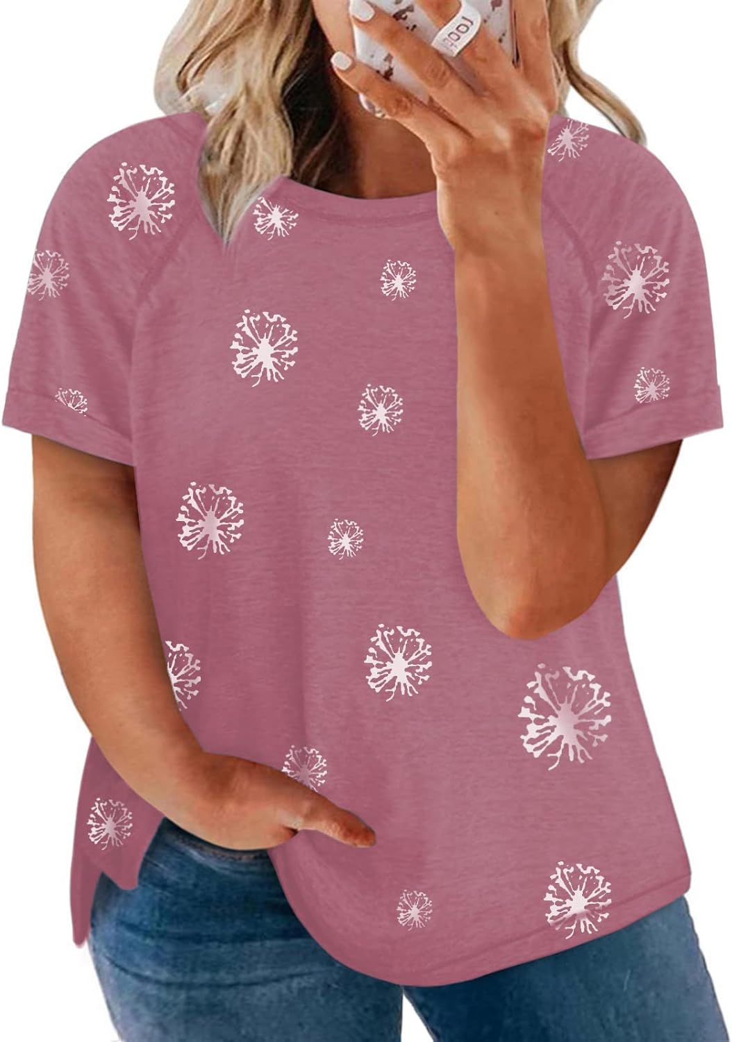 - Plus size summer tee shirts with roll short nd side slit hem, fit for all body types