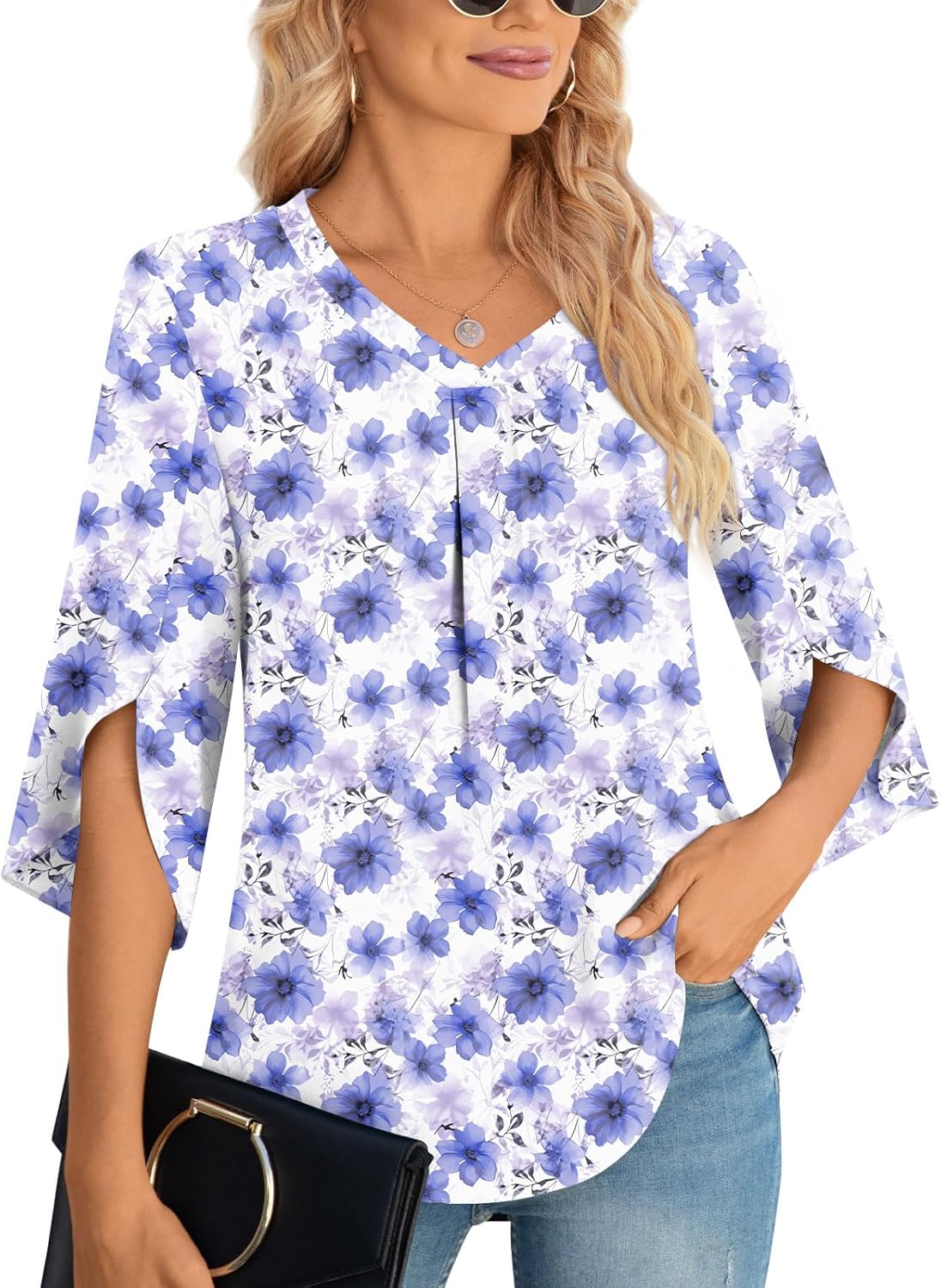 - ❤【Features】This Loose fit tunic is perfect for curvy women. It features a 3/4 sves, a v neck, and a front pleated design that will make you look elegant, slim, and stylish. The shirt has enough length to easily hide your belly and buttocks.